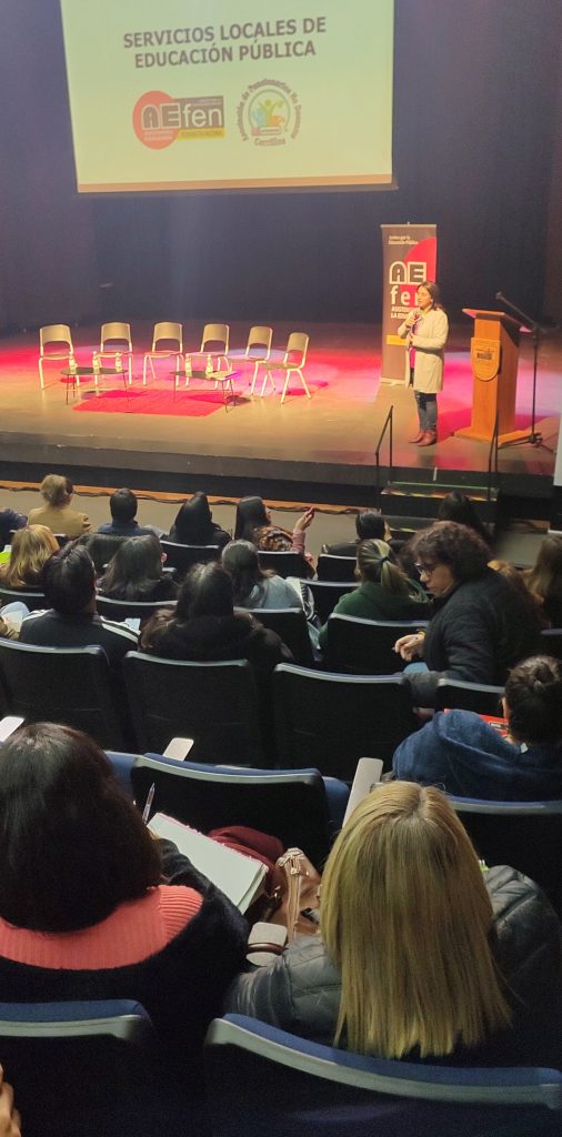 Yasna Sánchez, presidenta de AEFEN, insistió en la urgente necesidad de mantenernos informados y luego de observar las deficiencias, levantar propuestas con la intención de incidir concretamente en el mejoramiento de la norma, destacando la participación de las y los presentes.