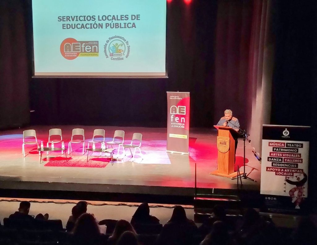 Este martes 5 de septiembre, AEFEN participó de un conversatorio organizado por AFUNDOCE Cerrillos, con el objetivo de informar el estado de funcionamiento del Servicio Local Santa Corina, implementado el 1 de marzo de 2023 y el respectivo traspaso del servicio educacional a través de una exposición realizada por Jeanette Allende, gestora territorial y Edith Alveal, encargada de relaciones gremiales de la Dirección de Educación Pública.