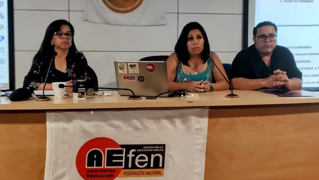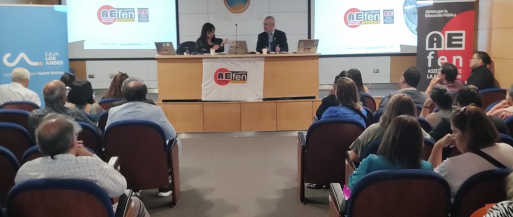 Otras de la autoridades que participaron de la jornada, fueron Claudio Quiroz y Felipe Selemat Academicos de la UMCE, Carlos Moya academico, José Valenzuela del equipo de la Subsecretaría del MINEDUC y Rodrigo Vásquez asesor jurídico de AEFEN.