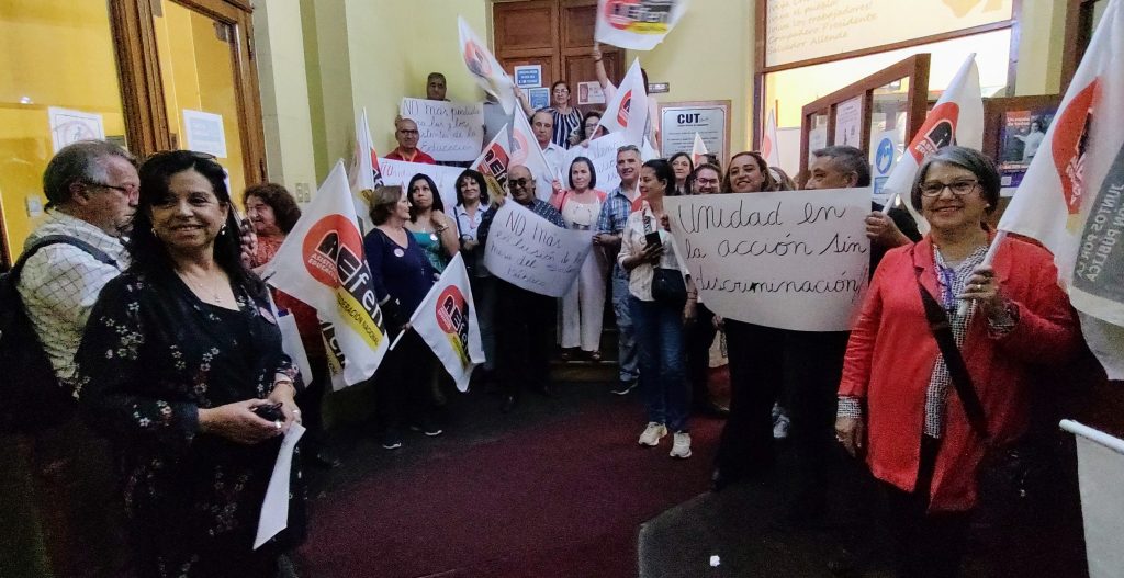 A medio día, las y los dirigentes realizaron una visita a la Central Unitaria de Trabajadores con el objetivo de entregar una carta al presidente, exigiendo el ingreso a la mesa del sector público.