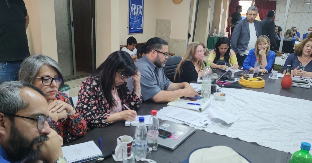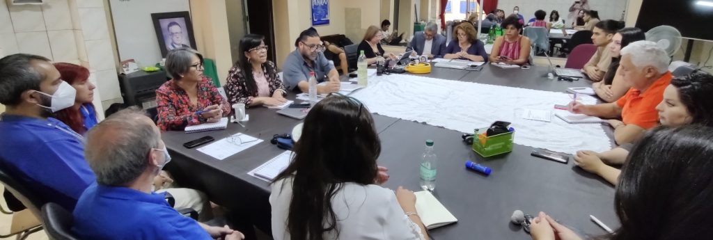 La Federación Nacional AEFEN, junto a 3 de las 5 organizaciones nacionales que conforman la mesa complementaria del sector público, se reunieron con las diputadas del distrito 12, Mónica Arce y Ana María Gazmuri y el diputado Hernán Palma este miercoles 7 de diciembre en la sede de SINTRACORPA, sindicato de trabajadores de la corporación de Puente Alto.