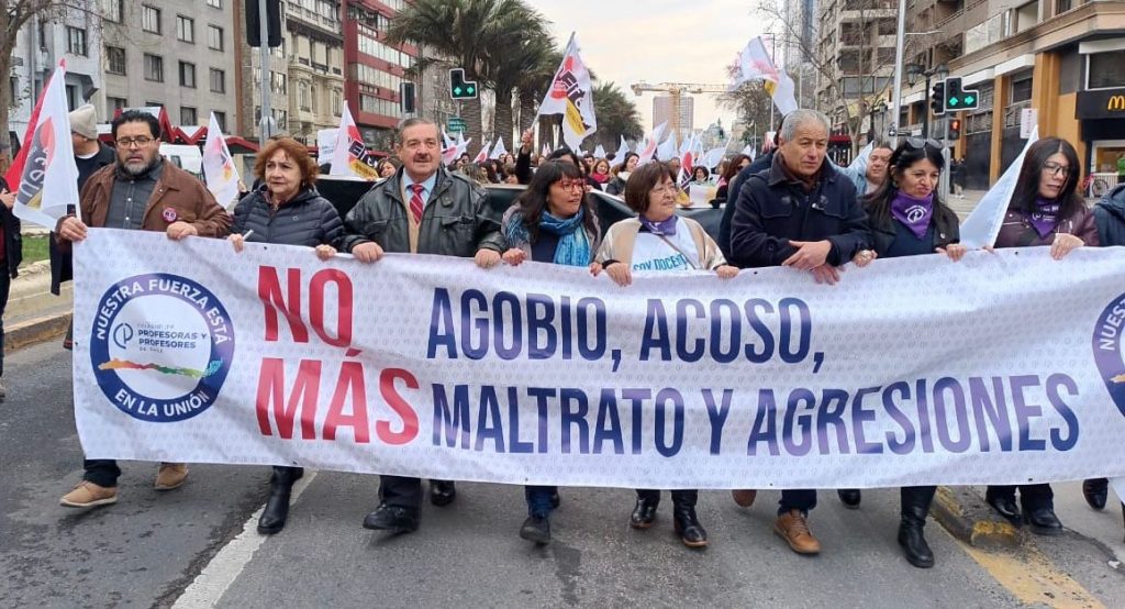 No contar con condiciones dignas para trabajar, no contar con remuneraciones decentes, no recibir el bono de incentivo al retiro a tiempo, no percibir el bono de asignación de zona y el bono compensatorio por el no traspaso, no contar con capacitación, perfeccionamiento y profesionalización, no ser considerados en el diseño de políticas públicas de educación, no contar con acompañamiento jurídico y psicologico y un debido proceso, son formas de maltrato y violencia.